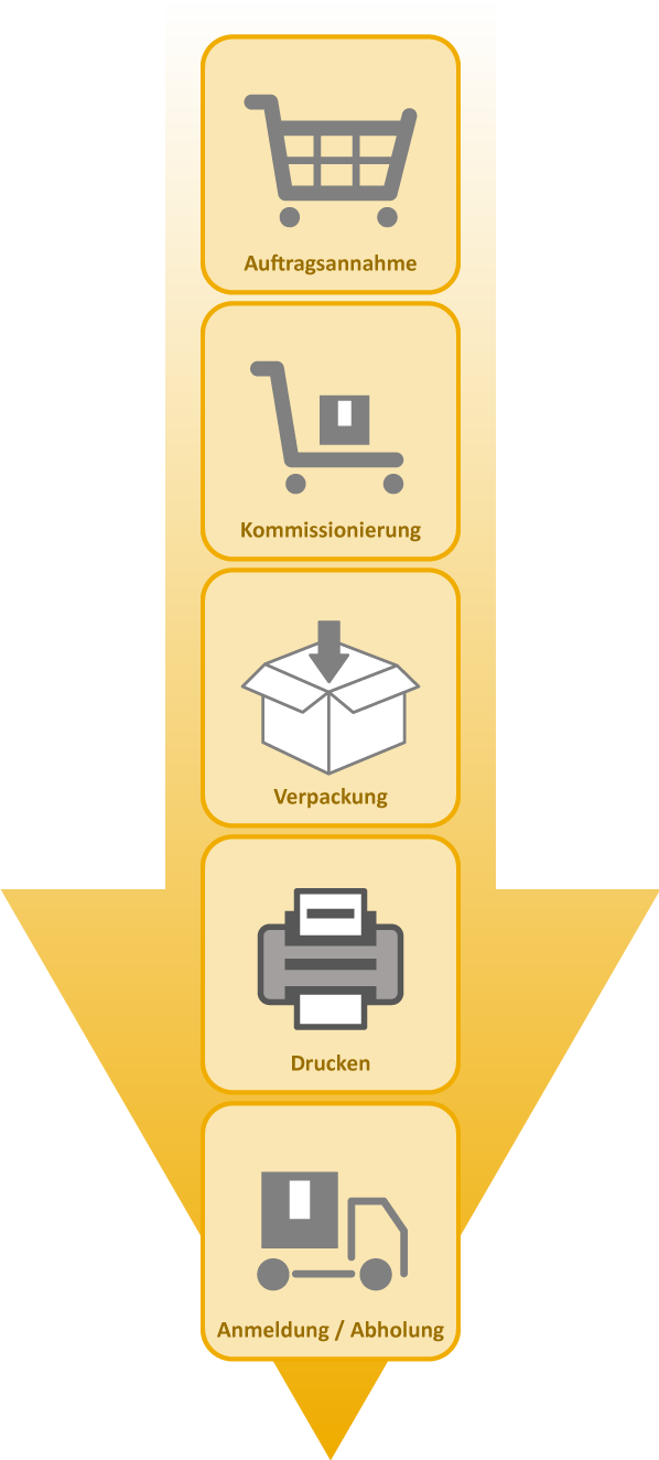 •  Ausdruck von Lieferschein, Rechnung und Versandetikett auf Knopfdruck