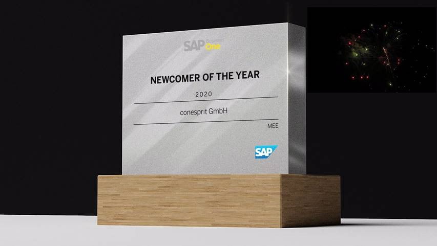 Stolz verkündigen wir, dass die conesprit GmbH von SAP für unser Produkt www.business-one.cloud als Newcomer of the Year 2020 ausgezeichnet wurden!